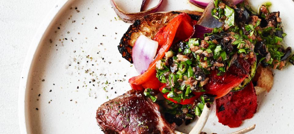 Sommerlam med grillet grønt og ansjosvinaigrette