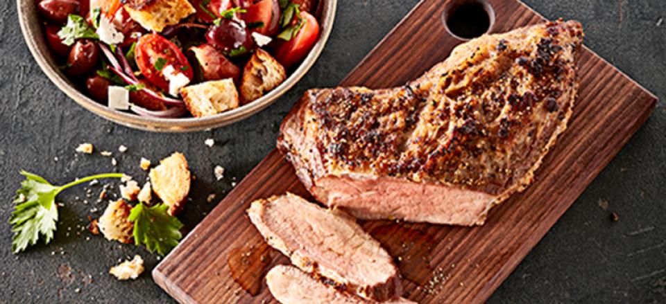 Sous vide kalvecuvette med rustik tomatsalat og brødcroutoner