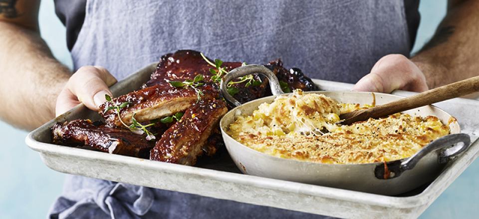Sous vide ribs med gratineret majs, jalapenos og cheddar