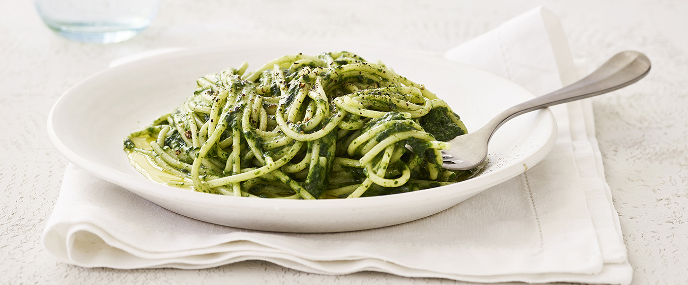 Tag 1½ dl af pastakogevandet, og hæld det i panden med spinat.