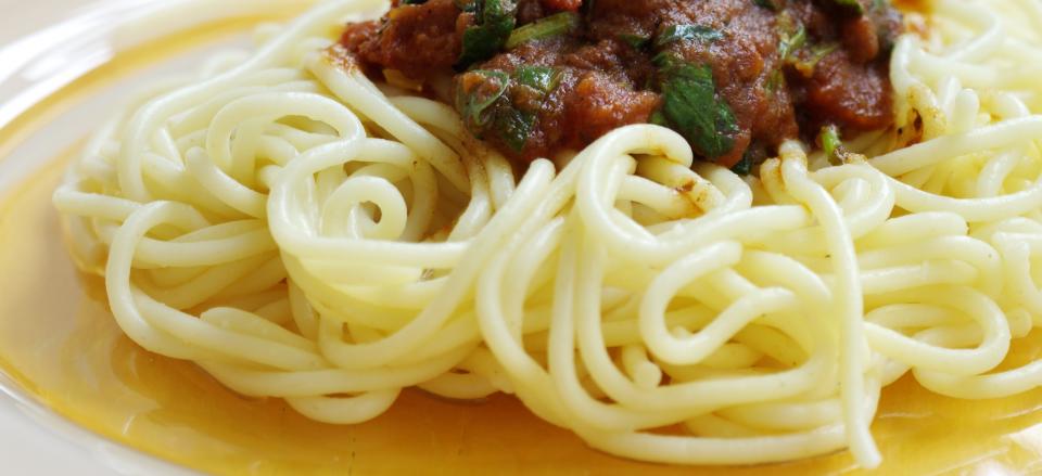 Lad tomatsaucen småsimre ved middel til svag varme under låg i 5 minutter.