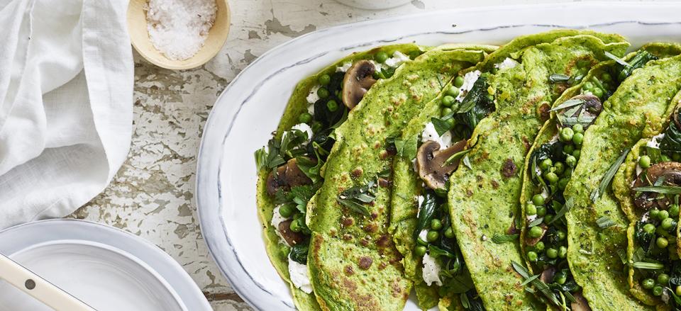 Spinatpandekager med ærter og gedeost