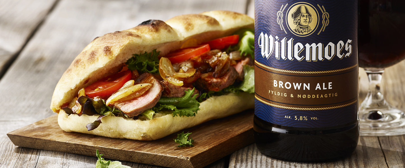 Smør dem med aioli og kom salat, steak, løg og tomater i.