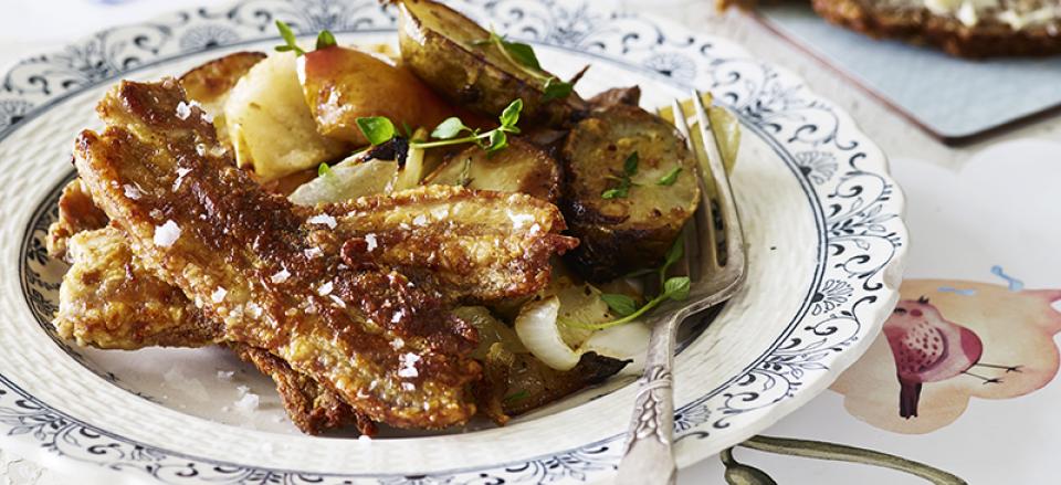 Stegt flæsk med jordskokker og æble