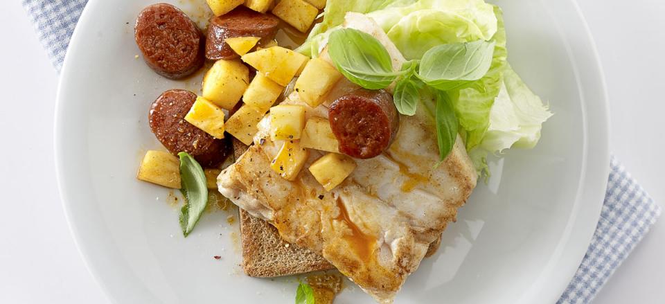 Stegt kuller med ristet ananas og sprødstegt chorizo