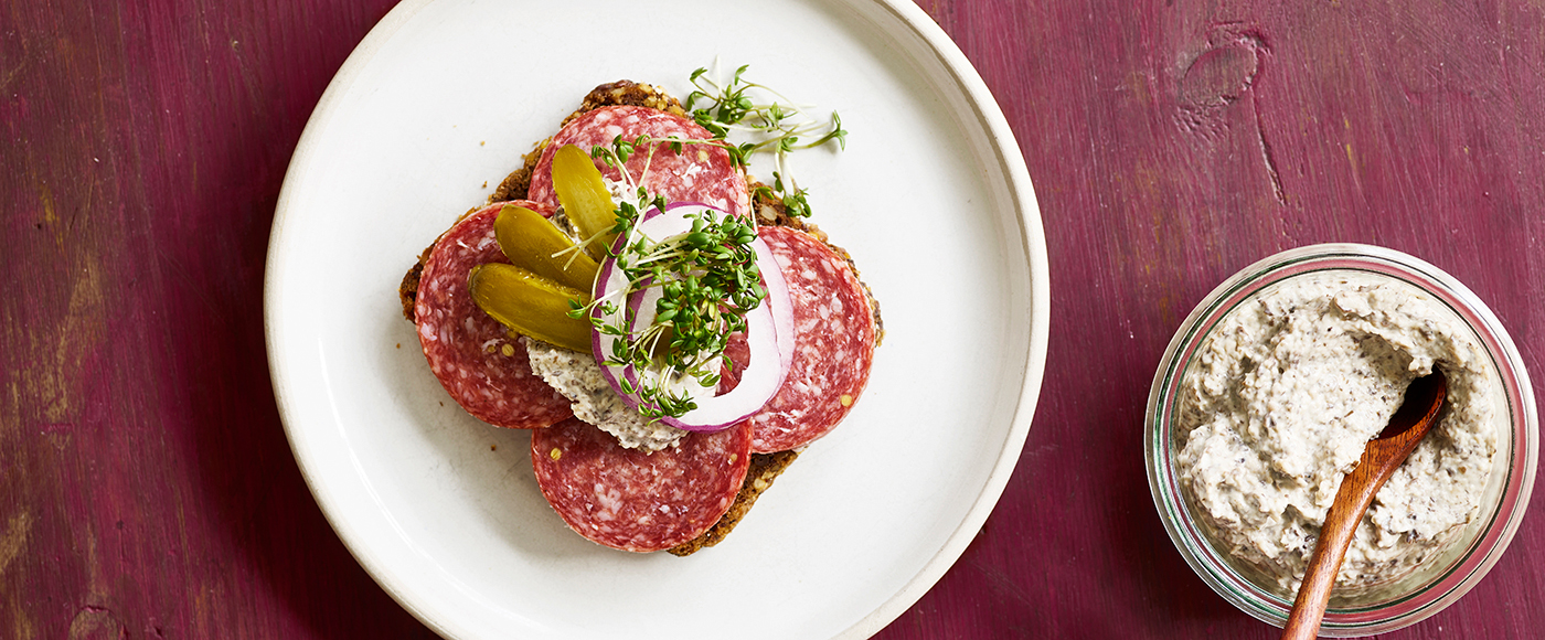 Rør de hakkede svampe i mayonnaisen og smag til med ekstra salt og peber.