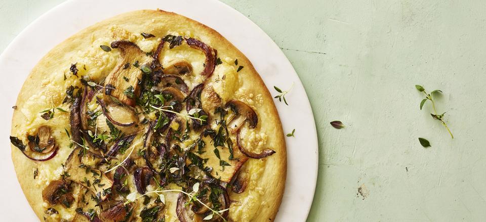 Fordel Violife med mozzarellasmag på bundene, og kom derefter svampene på.