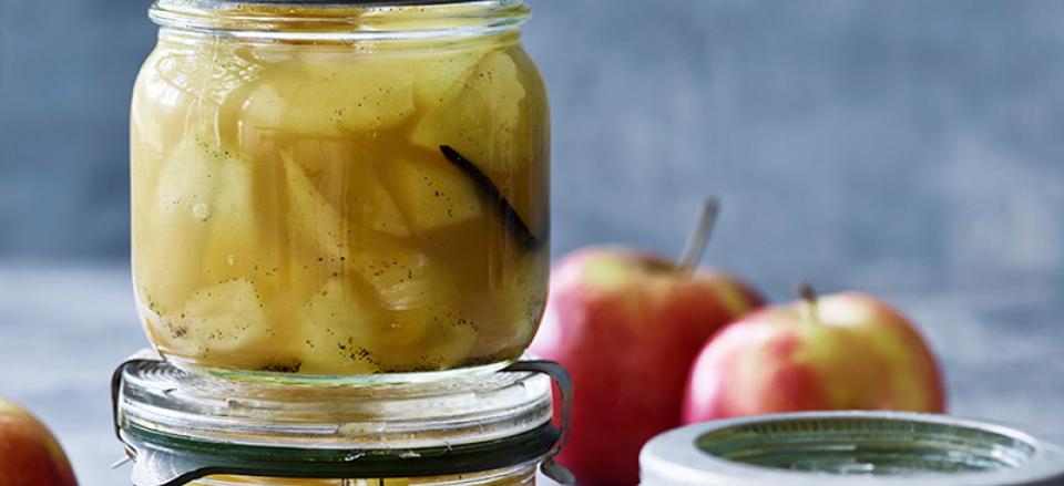Hæld den skoldhede sirup over æblerne og luk glassene tæt.