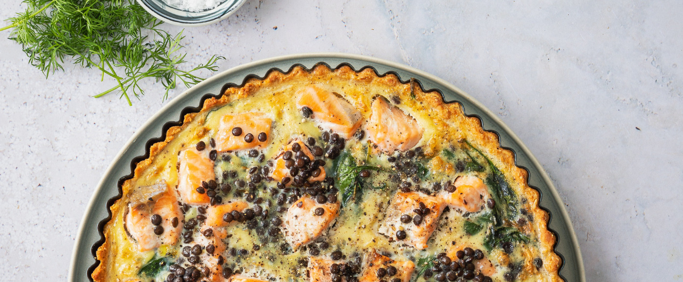 Tærte med laks, Anicia linser og spinat