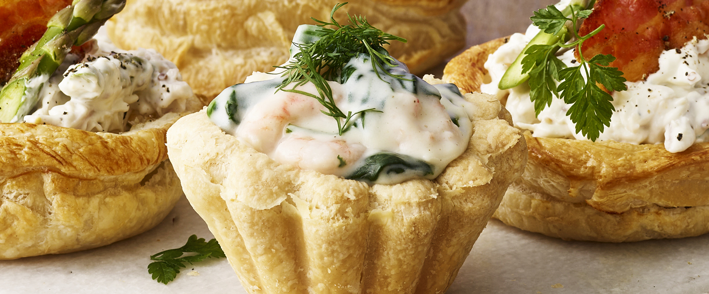 Tarteletter med rejer, spinat og ostesauce