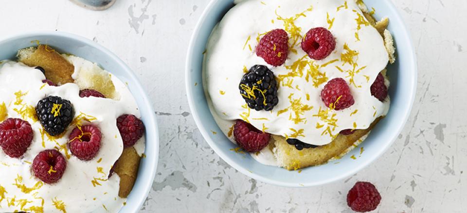 Kom halvdelen af bærrene i og halvdelen af cremen over.