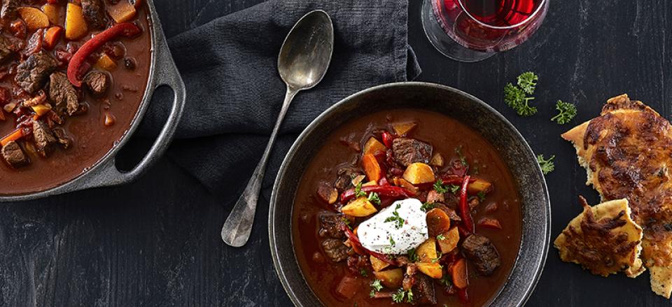 Ungarsk gullaschsuppe med madbrød