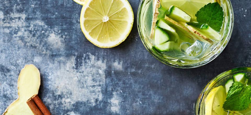Vand med ingefær, agurk, lime, mynte og citron