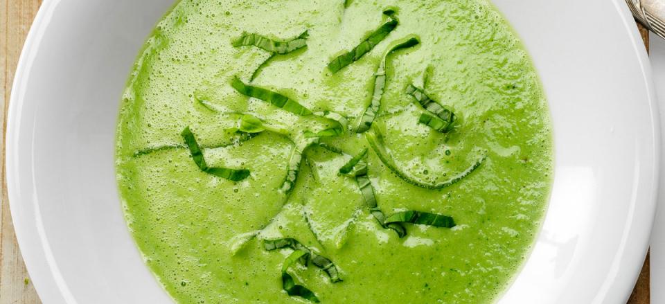 Tag suppen af komfuret, hæld den over i en blender, og blend i 1 minut, til den har en jævn konsistens.