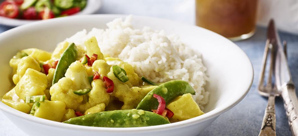 Vegetarkarry med kartofler, blomkål og kokosmælk