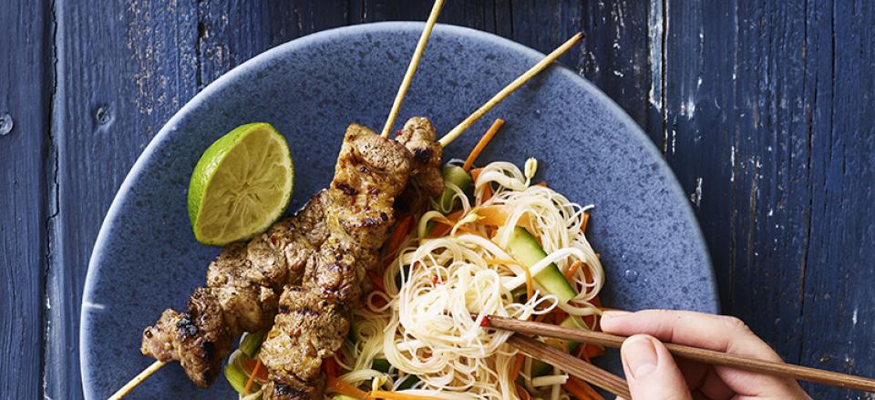 Vietnamesisk gris med citrongræs og risnudler med sød chilidressing