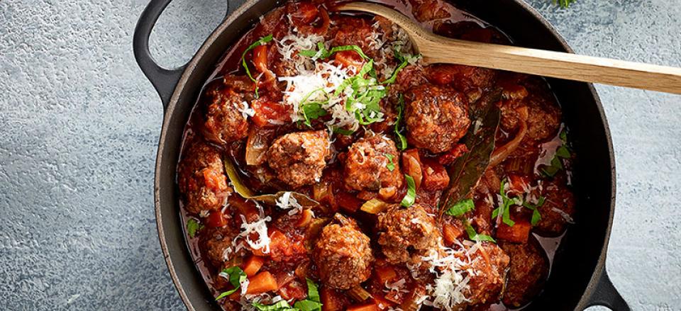 Tilsæt kødbollerne til saucen og lad dem simre med i gryden i ca. 10 min. uden låg.