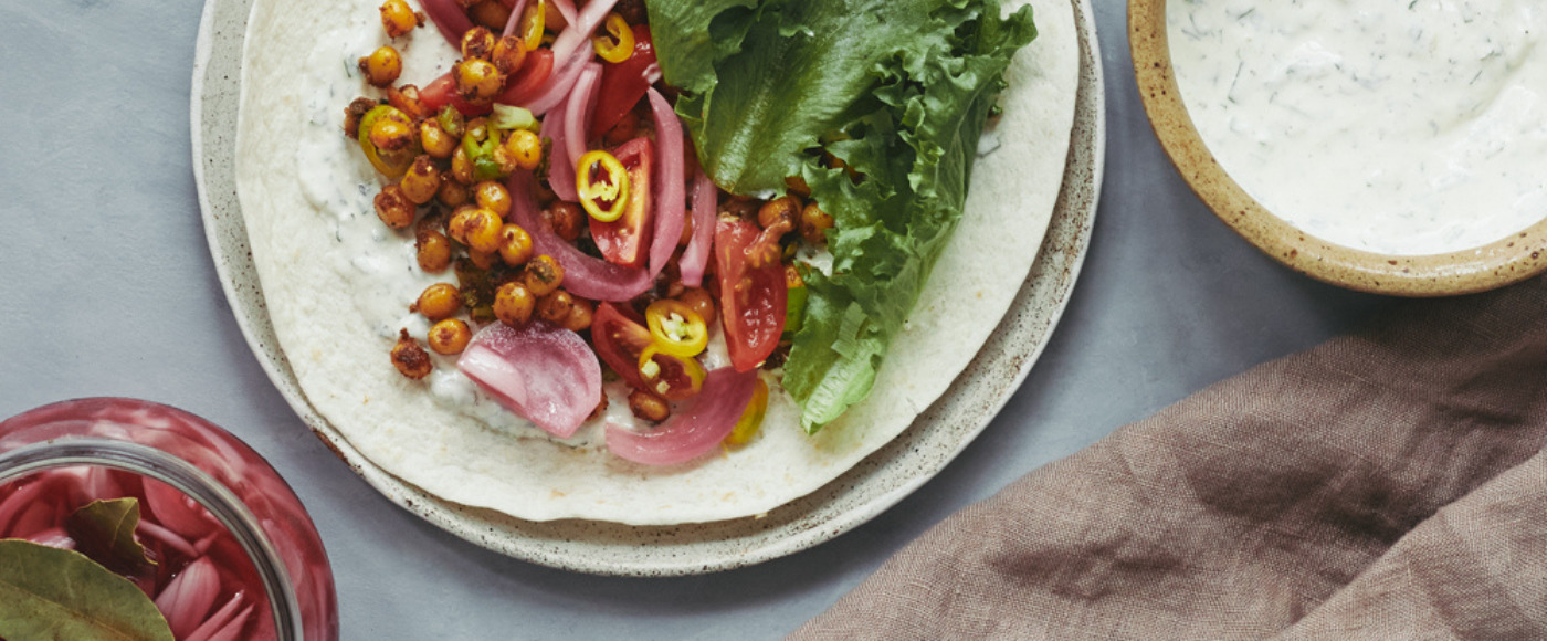 Wraps med stegte krydrede Ingrid ærter og grønt