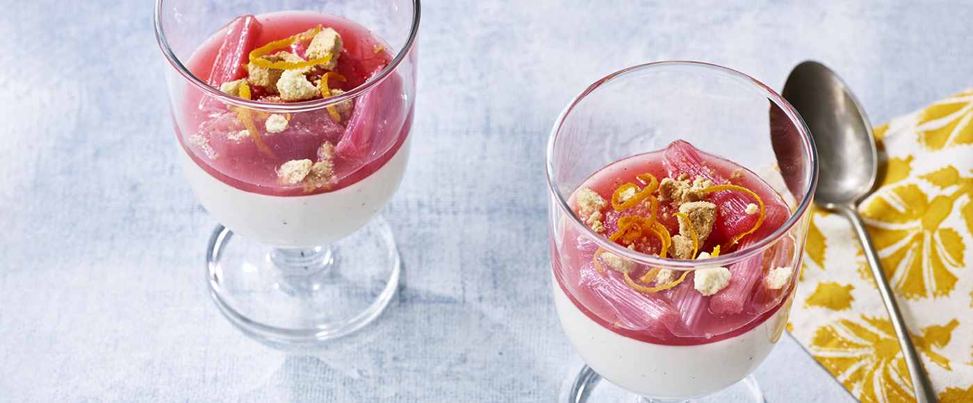 Yoghurt panna cotta med appelsin, rabarberkompot og kammerjunkere